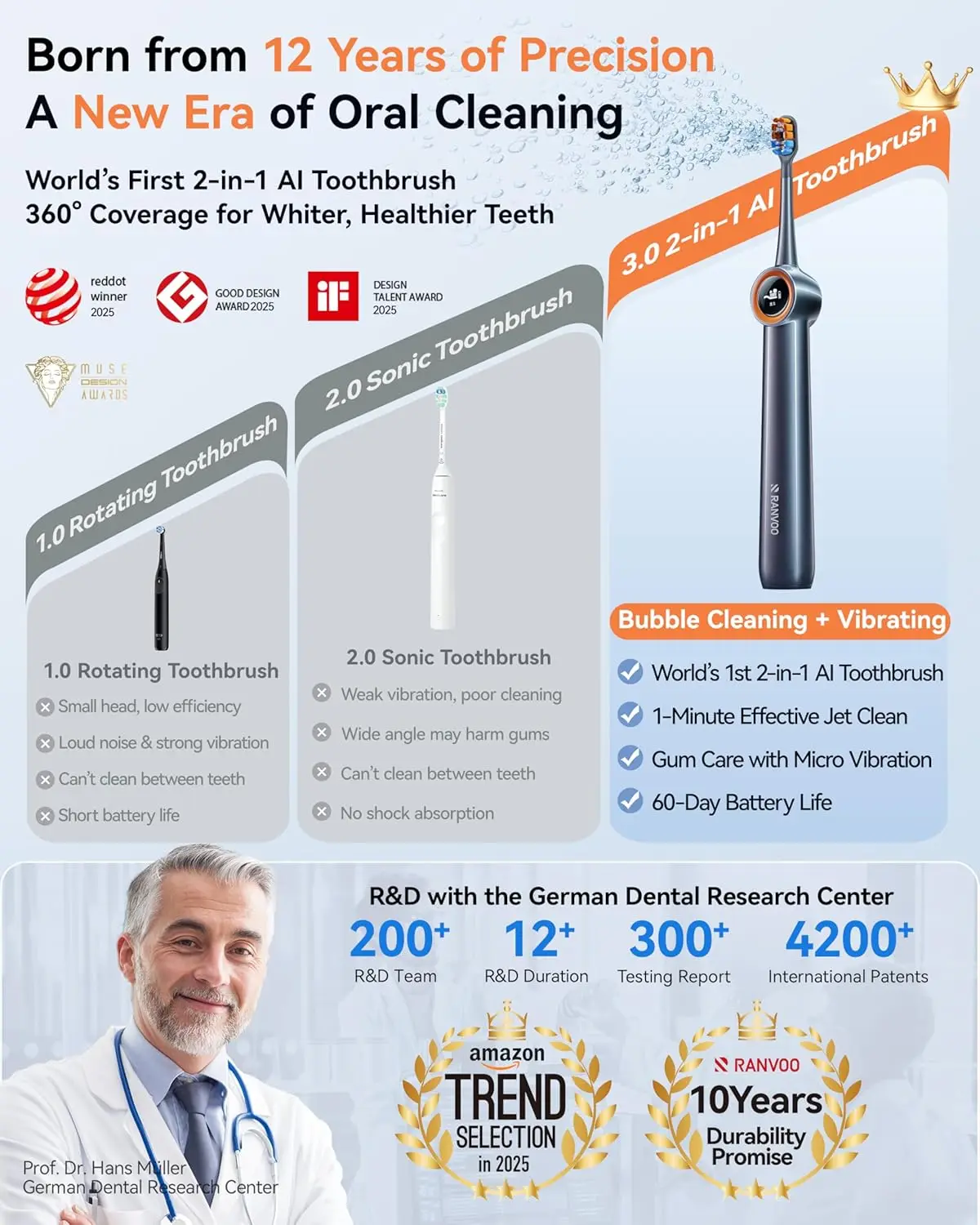 BDG™ Max Jet Clean Vibrating & Flossing 2-in-1 Sonic Electric Toothbrush