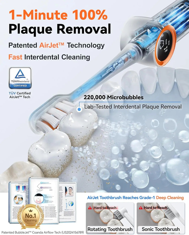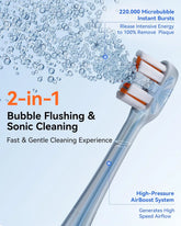 Experience superior oral care with our advanced electric toothbrush designed for effective cleaning and gum protection. Key Features: - **Dual-Action Technology**: Combines high-frequency vibrations and gentle flossing action in one device, providing a comprehensive clean that reaches between teeth and along the gumline to remove plaque effectively. - **Plaque Removal Efficiency**: The sonic technology generates thousands of micro-bubbles per minute, helping to dislodge food particles and bacteria for a noticeably cleaner feel after each use. - **Gum Protection**: Specially designed soft brush heads are gentle on sensitive gums while maintaining cleaning power, reducing the risk of irritation and promoting healthier oral tissues over time. - **Rechargeable Convenience**: Built-in lithium battery offers long-lasting performance on a single charge, eliminating the need for frequent battery replacements and making it an eco-friendly choice. - **Complete Kit**: Includes two replacement soft brush heads in a neutral gray color, ensuring you have backups ready when needed for consistent hygiene maintenance. Benefits for Users: - Achieve a dentist-recommended clean at home with minimal effort, saving time and potentially reducing dental visits for routine plaque issues. - Ideal for adults seeking an upgrade from manual brushing, offering enhanced cleaning that can contribute to fresher breath and brighter smiles. - Perfect as a thoughtful gift for health-conscious individuals or anyone looking to improve their daily oral care routine with reliable technology. Usage Tips: 1. Charge fully before first use to ensure optimal battery life. 2. Apply a pea-sized amount of toothpaste to the brush head for best results. 3. Use gentle circular motions along teeth surfaces and gumlines; let the vibrations do the work without pressing hard. 4. Replace brush heads every 3 months or as recommended by dental professionals to maintain effectiveness. This toothbrush is crafted from durable materials with a sleek white design that fits comfortably in hand. It operates quietly for discreet use and includes standard safety features like automatic shut-off after two minutes to prevent overuse. Backed by quality assurance, it's suitable for daily home care without harsh chemicals or complicated setups—simply turn it on and enjoy a refreshing clean.