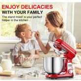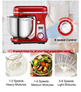 【No Mess in Splash-proof & Anti-slip Compact Design】The Kitchen Food Standing Mixer helps you to keep the kitchen tidy, there is a splash guard to avoid ingredients to spray out. The Electric Mixer covers 35.1 x 28.5 x 31.2 cm, it truly saves space and time. The Stand mixer comes with anti-skid silicone suction feet which is more stable and safer, it helps to reduce the noise as well.