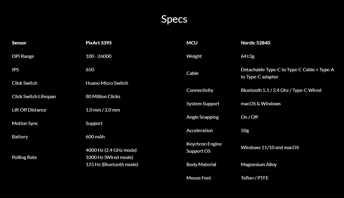 * Usage duration is 40 hours in 4K Polling Rate mode.