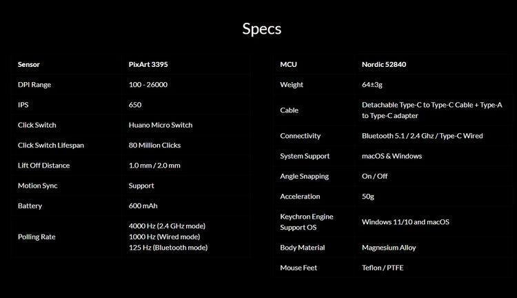 M3 mini has the strongest, most competitive grade mouse sensor chip PixArt 3395, with up to 26,000 DPI, up to 650 IPS, and incomparable gripping precision. Whether for work or gaming, it offers an unparalleled experience.