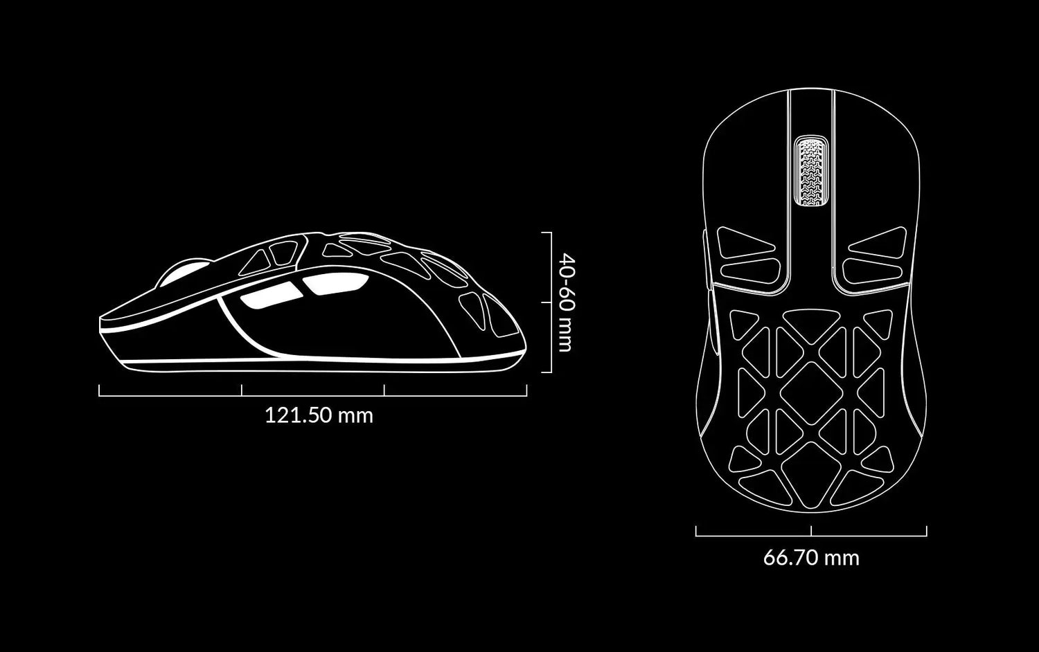 The low-density magnesium material with a holey shell design removes extra weight and makes it super light at only 64g. It can still maintain the best strength for the effortlessness and flexibility in your hand for extended use.