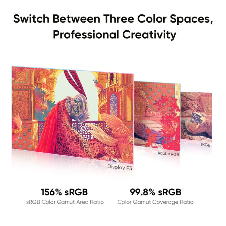 By supporting sRGB, Adobe RGB, and P3 professional color space switching* to meet various creative display requirements, Artist Pro 19 brings creators an exceptional drawing experience.