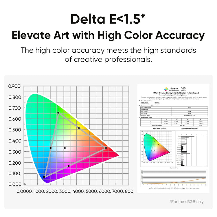 It is a Calman-verified display. With a 99.8% sRGB color gamut coverage ratio and 250cd/m² brightness.
