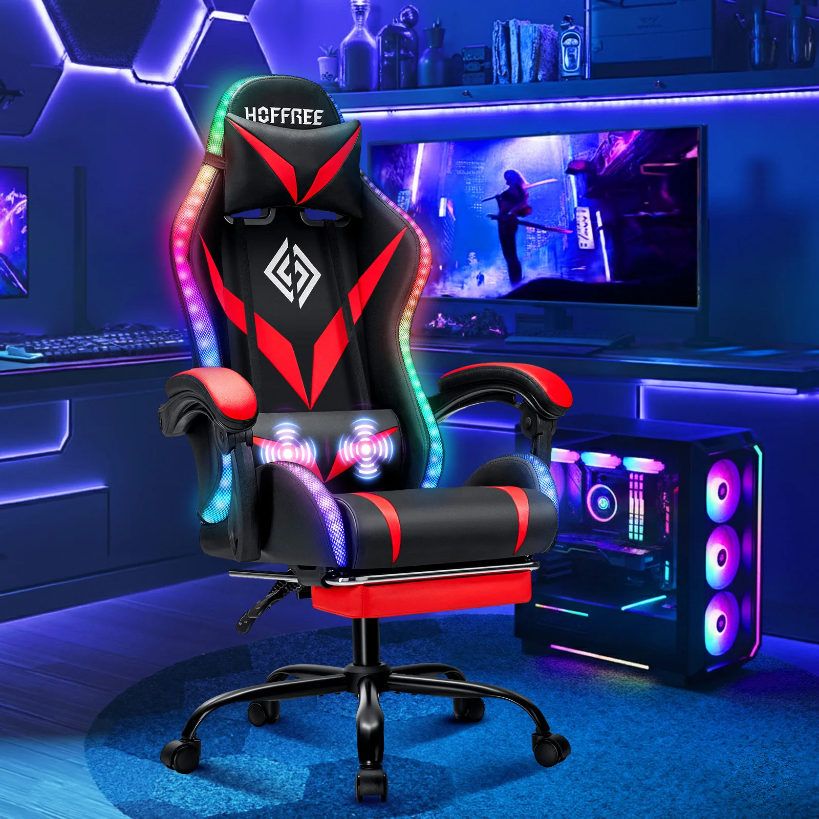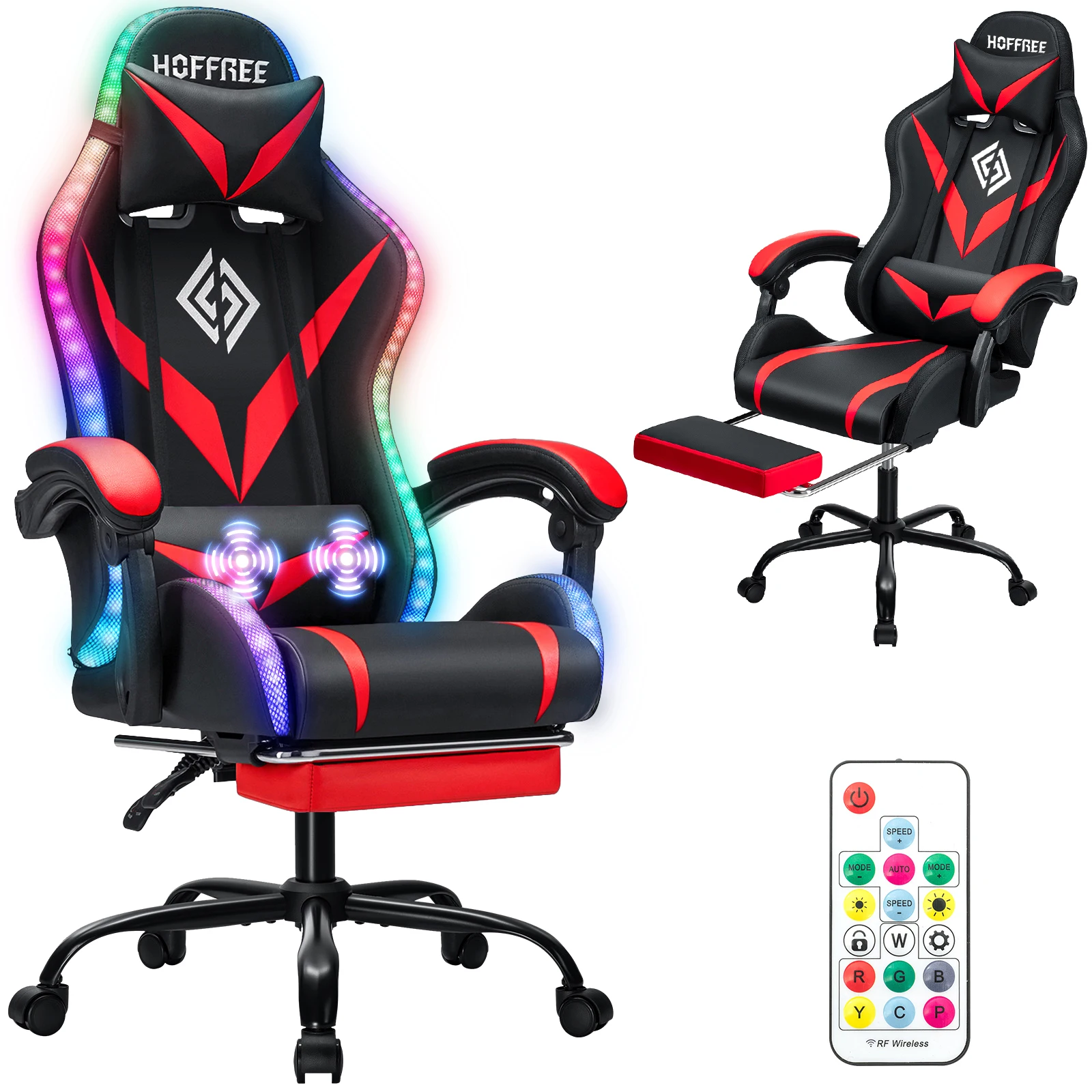 - 【Colorful RGB LED Lights】LED lights are installed on the edge and back of the seat. Equipped with a remote control, you can easily adjust multiple lighting modes to create a dynamic atmosphere and enhance the user experience