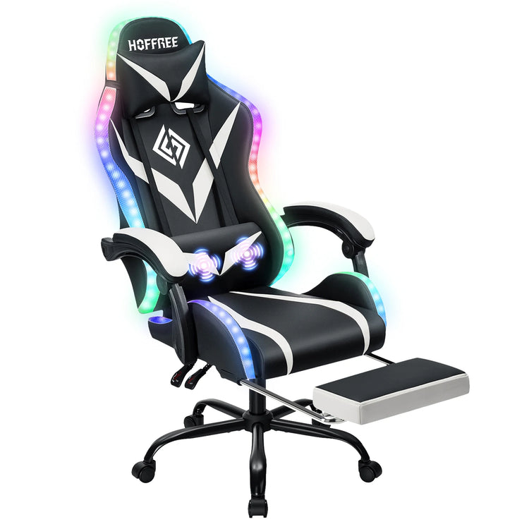 350LBS Gaming Chair with LED RGB Lights Massage Video Gamer Chairs with Footrest Ergonomic High Back Reclining Computer Chair