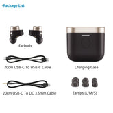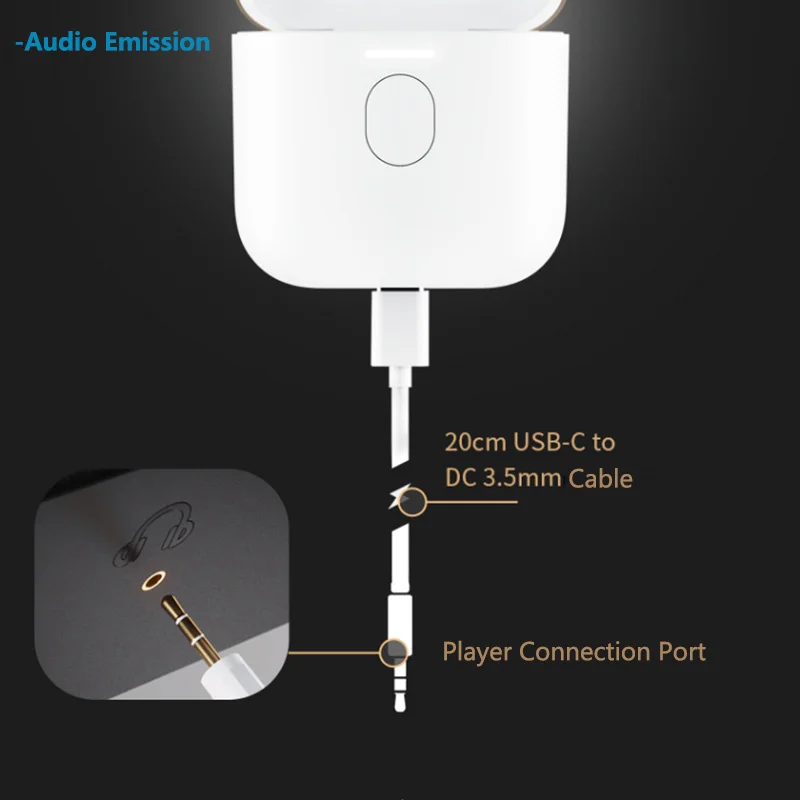 There is a sturdy fast charging case that uses audio retransmission and connects it to the media source using a USB-C cable (including) to achieve music streaming. 15 minute fast charging ensures up to 2 hours of playback time.