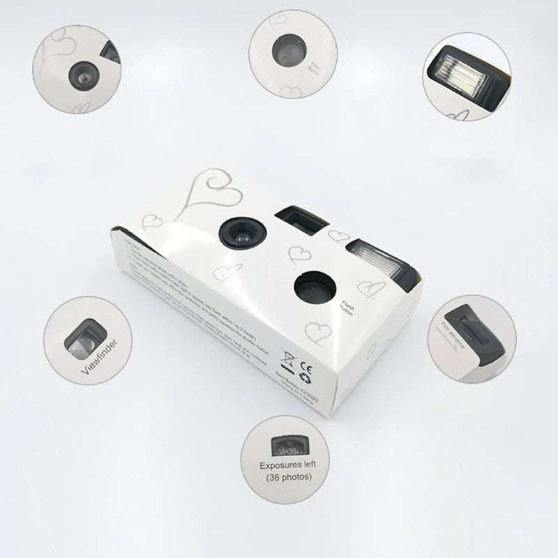 all the hilarious images at your wedding or bridal shower with these silver hearts disposable cameras.