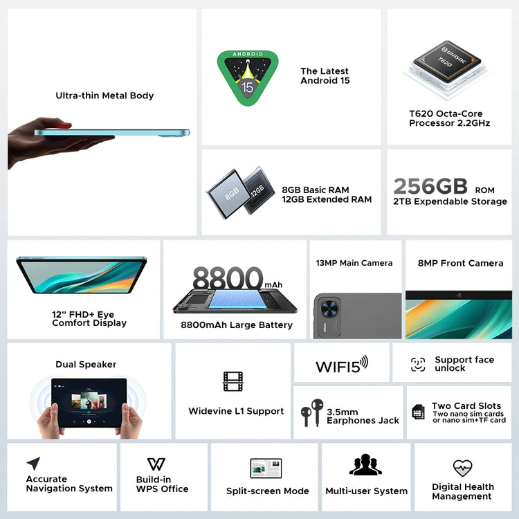 Unisoc T620 Octa-Core Processor | 12" FHD+ EyeComfort Display