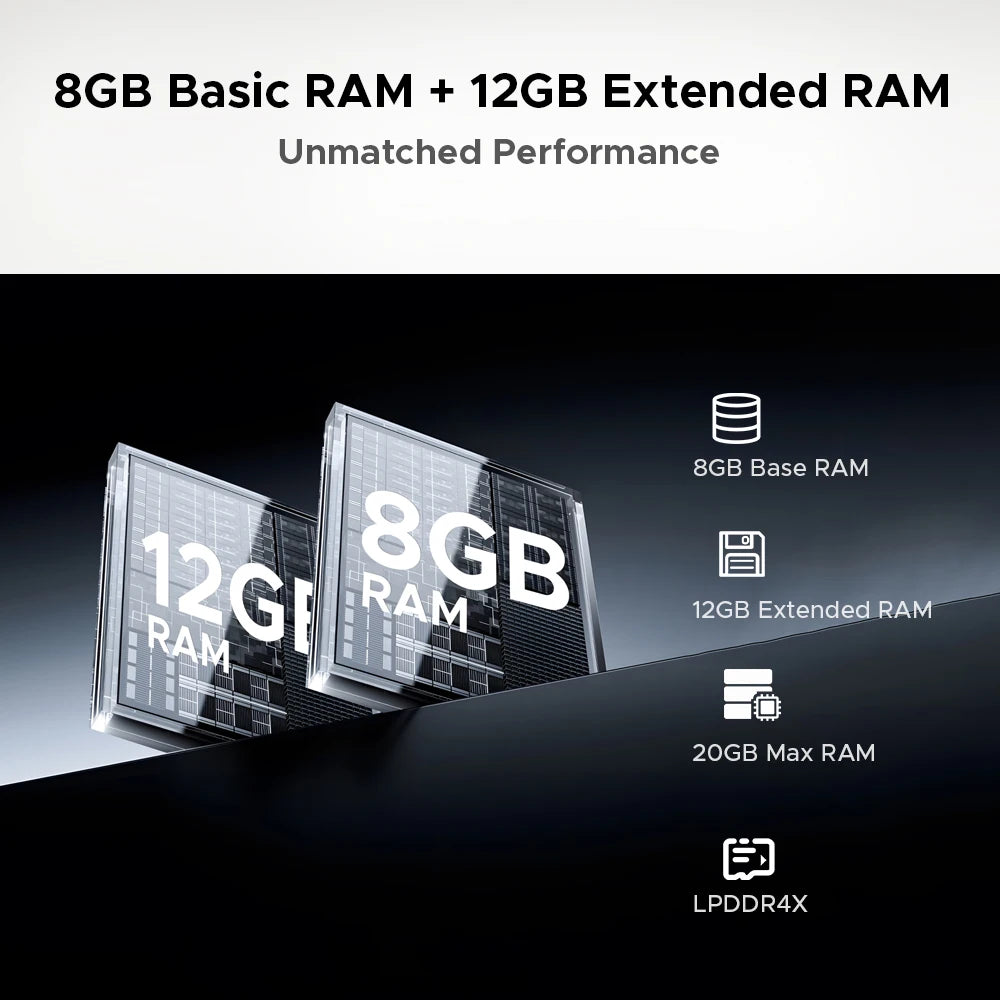 20GB RAM (8GB+Up to 12GB Extended RAM) +256GB ROM |