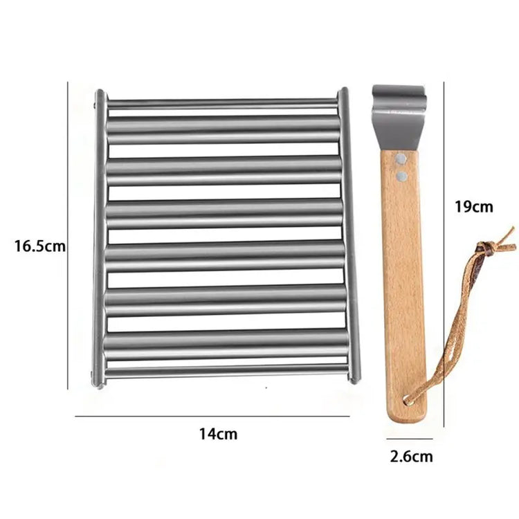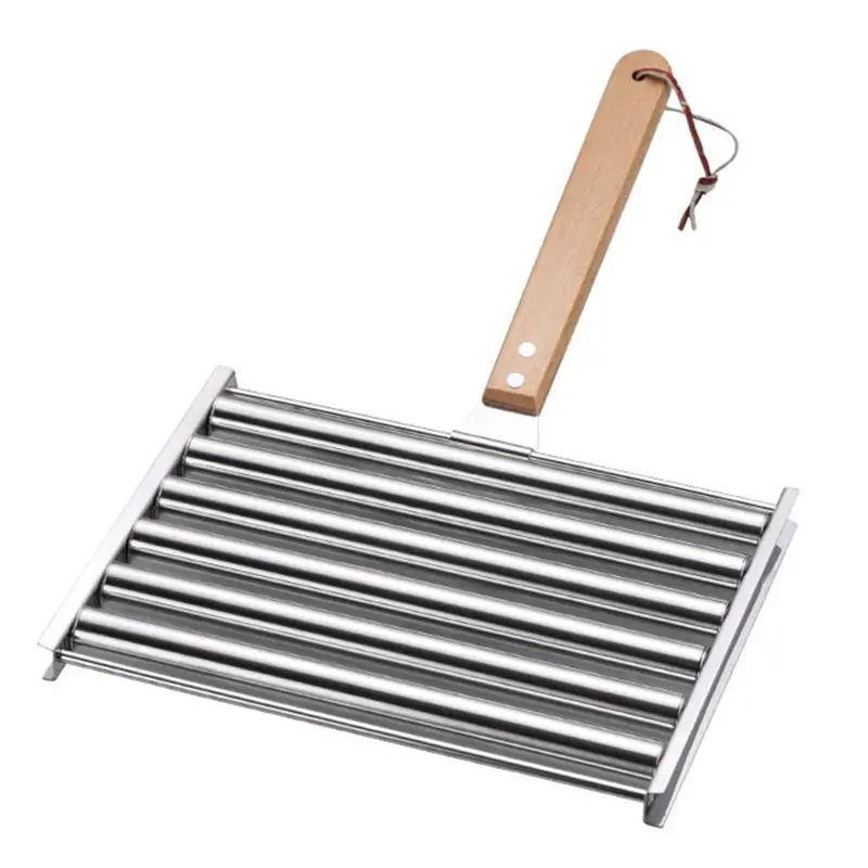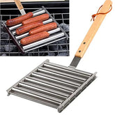 Durable Construction: Crafted from robust stainless steel, the hot dog roller is built to last. It features a wooden handle for comfortable operation and transport, making it a reliable addition to your cooking gear.