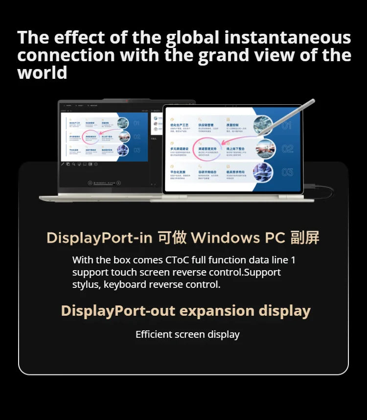 Unlock next-level versatility with DP-In functionality, allowing you to use the tablet as a secondary display for your laptop or PC.