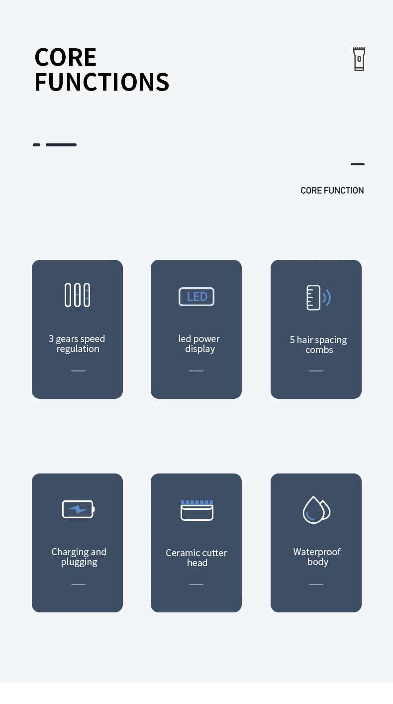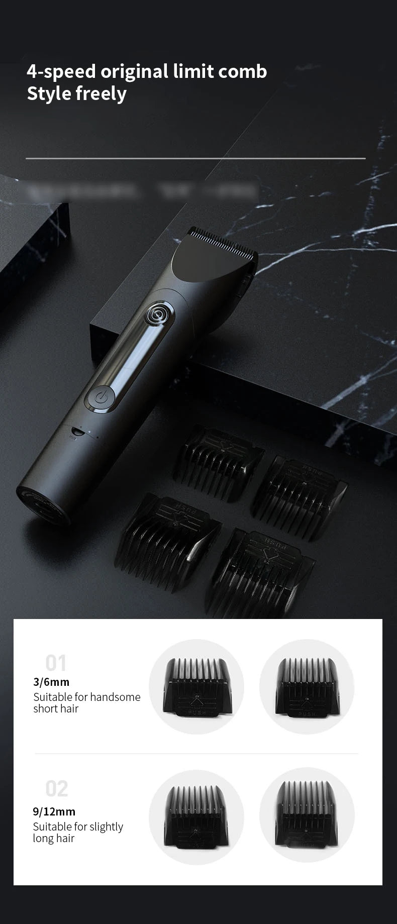 * Original four combs. 20 length adjustment modes, easy to trim hair.