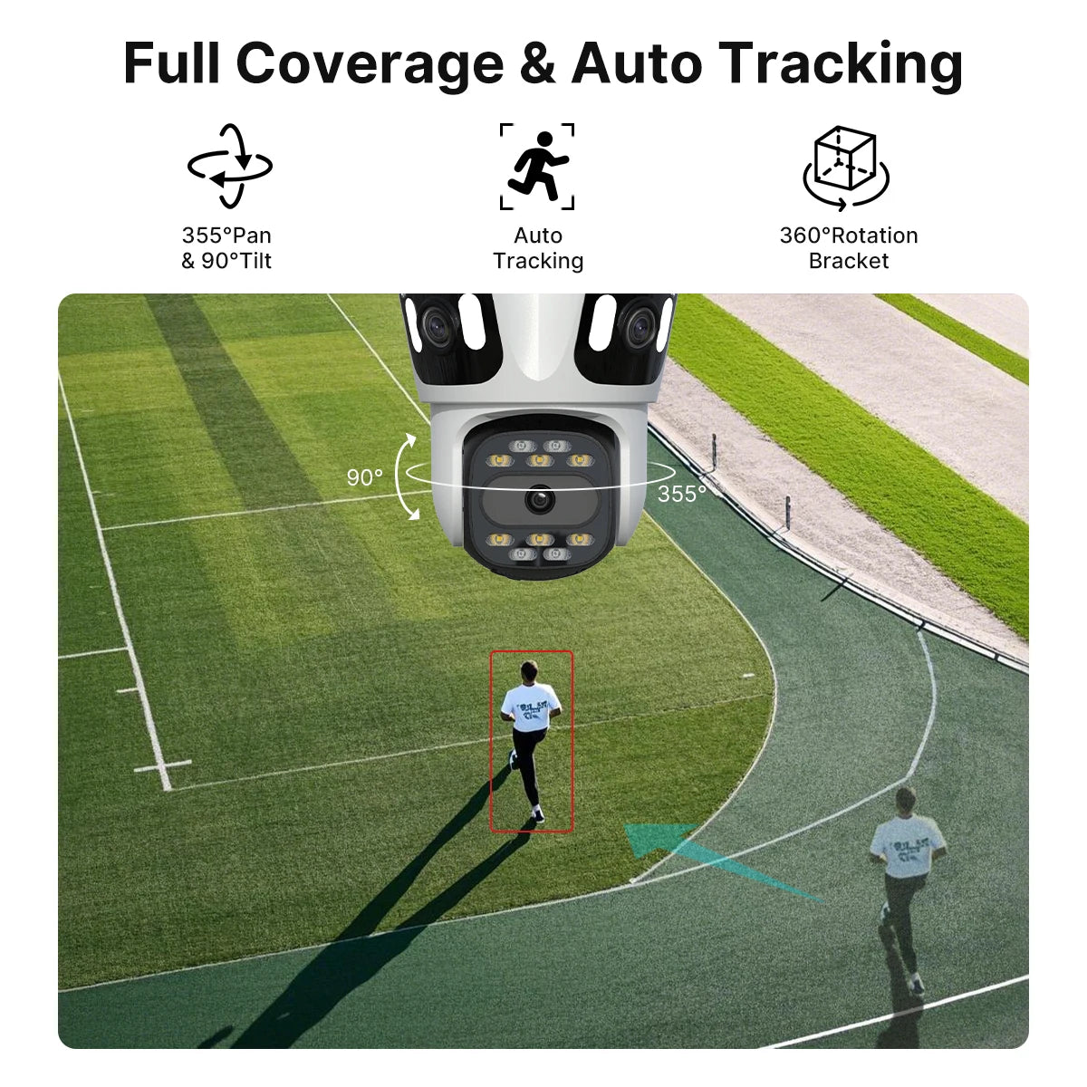 *After locking the target, the camera will adjust the pan rotation automatically, Tracking Moving Human and push alerts notifications to your Smartphone.