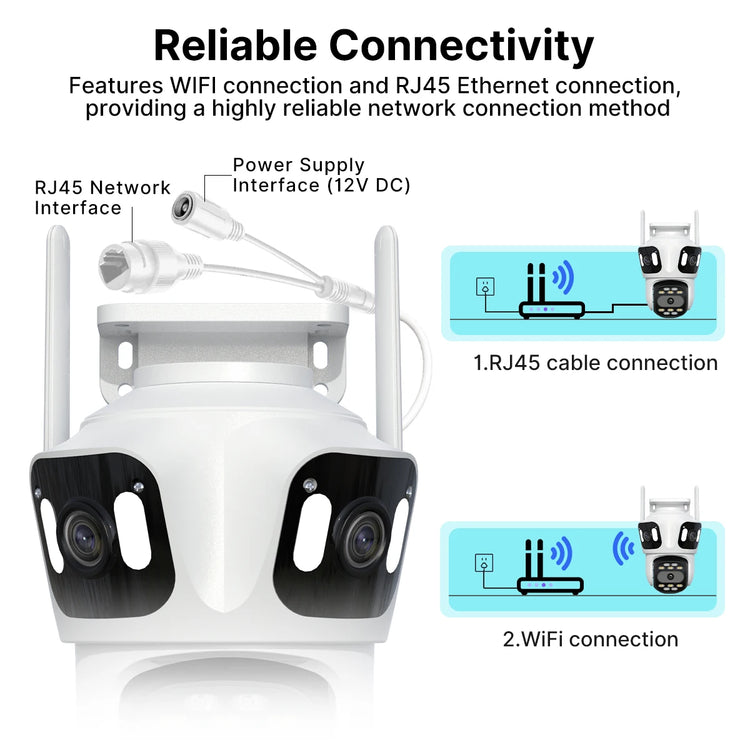 * Dual-lens Camera supports Dual screen real-time monitoring.