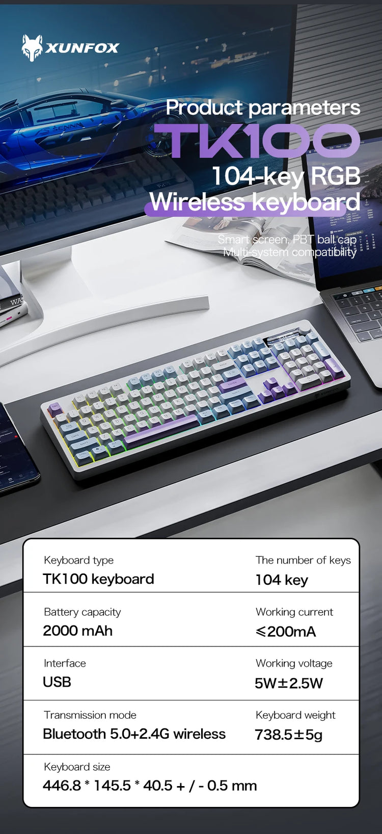 Xunfox TK100 Bluetooth Wireless Keyboard